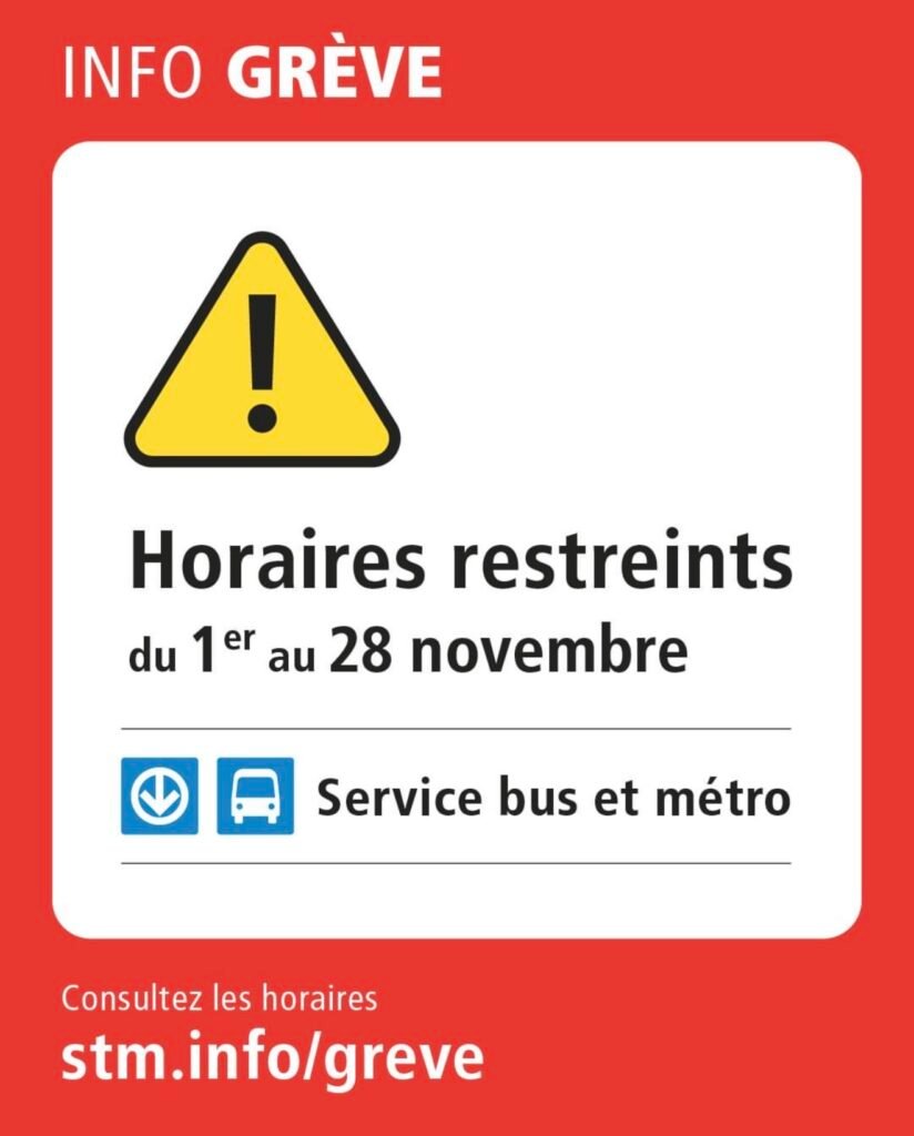 The union representing bus drivers, metro operators and station agents (CUPE 1983) also announced strike days on November 1, 15 and 16, following legal constraints.